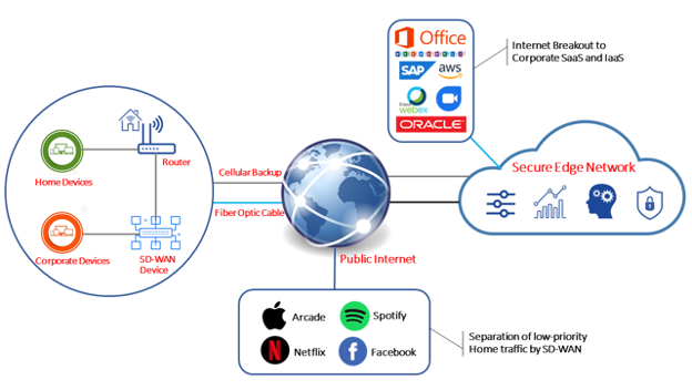 SD-WAN allows organisations and remote workers to connect easily and quickly. It offers more functionality than VPNs, while also being relatively easy to set up and maintain. SD-WAN plays an intermediary role between broadband router and working devices, resulting in Quality of Services and network security up to the business standards. A work-from-home user simply needs to plug in an SD-WAN device to the broadband router or Wi-Fi hotspot, with the other end connected to a laptop device. This creates a secure connection which is efficient enough to withstand the demands of a corporate network. After this simple installation, a company’s central IT department can setup, manage and monitor the provisions of commands through managing software. As a result, this whole setup becomes efficient and secure on QoS standards. Each user working from home is centrally controlled, as though each one were physically working from the office.