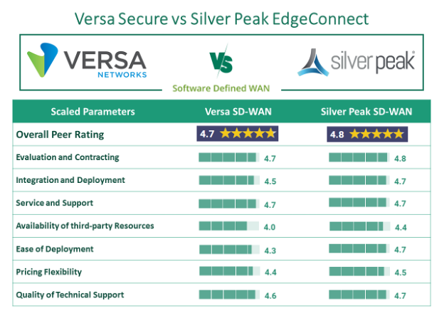 Comprehensive analysis of Versa Secure SD–WAN and Silver Peak EdgeConnect SD–WAN shows differences and similarities in the functionalities and features they are offering, depending upon their applications. Being leading 5 vendors, market competition is at an all-time high between both of the service providers to occupy the customer market. Though they have both been locked in a battle to mark their supremacy, the choice of suitable vendor is subject to business requirements and the existing IT structure of the enterprise willing to upgrade its existing WAN structure to SD–WAN.